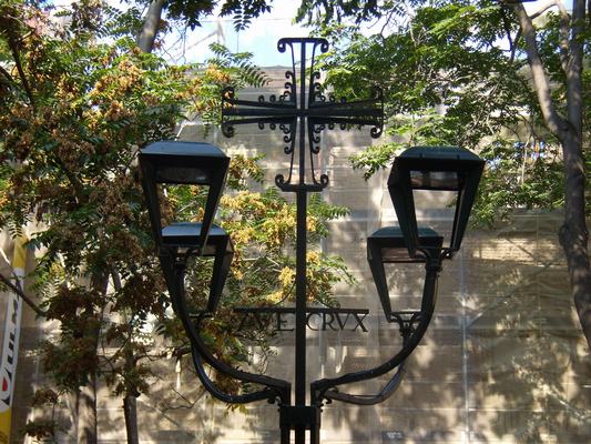 Cuatro placas de azulejos en cada cara del basamento, con la inscripción: "TRANSEUNTE. ESTA CRUZ BENDITA ESPERA DE TI UNA ORACION POR LOS MARTIRES DE LA GUERRA R.I.P.". En la cruz propiamente dicha, en letras caladas de hierro: "AVE CRUX"