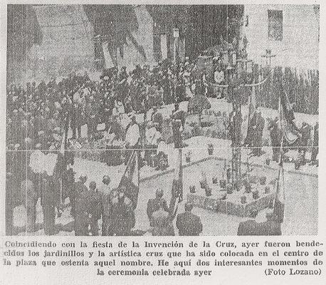 ANÓNIMO, "Una hermosa obra de la Junta del Canal. Solemne bendición de una cruz monumental e inauguración de los jardines y fuente en la plaza de Santa Cruz", en Heraldo de Aragón, (Zaragoza, 4-V-1937), portada y p. 3.