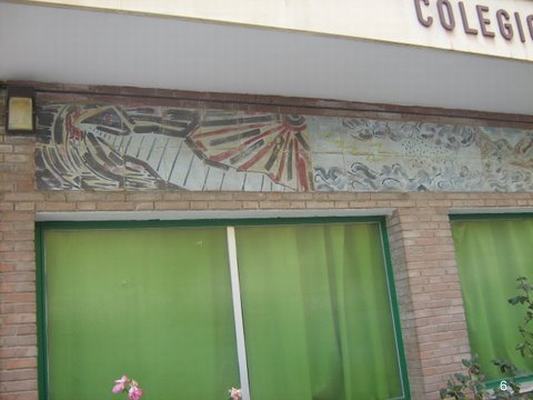 Mural cerámico en la fachada del Colegio Condes de Aragón. Centro de Formación profesional.