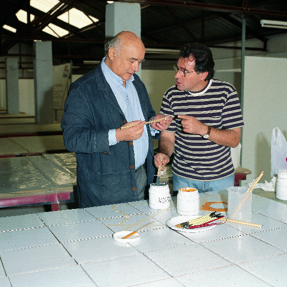 SAURA, Antonio (Pintor)Fidel Ferrando nace en Alcañiz (Teruel) el 15 de noviembre de 1955. Ceramista y químico. Cursa estudios, de 1974 a 1977, en la Escuela de Cerámica de Manises, Valencia. Desde 1977 vive en Alcañiz, Teruel. Comisario de exposiciones.Antonio Saura nace en Huesca el 22 de septiembre de 1930 y fallece en Cuenca, el 22 de julio de 1998. Pintor autodidacta y, al mismo tiempo, con publicaciones de imprescindible consulta. Comienza a pintar en 1948 con obra surrealista. En 1952 viaja a París. En 1957, con otros artistas, funda en Madrid el importante grupo El Paso. Viaja por diferentes países y reside en Cuenca. Cuadros, serigrafías dibujos y collages se impregnan de un personal estilo.