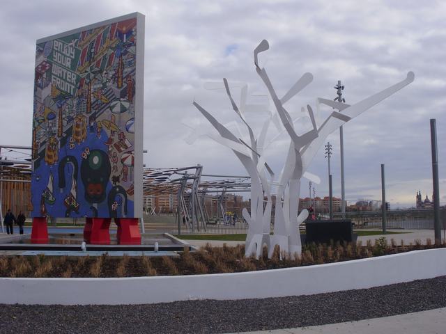 - Frente Fluvial de la Expo, junto al mural titulado Enjoy your waterfront, en el espacio ocupado durante la Expo 2008 por la plaza temática Ciudades del Agua.
