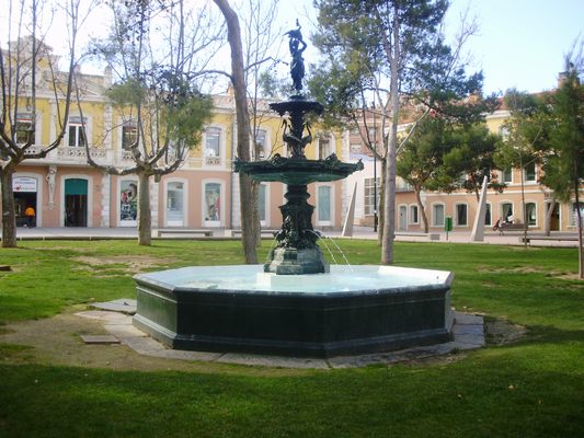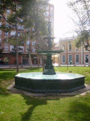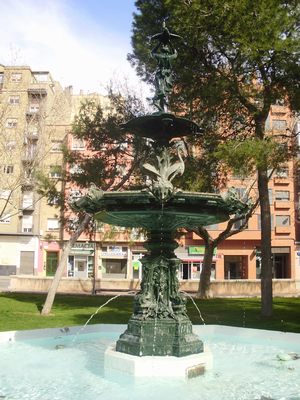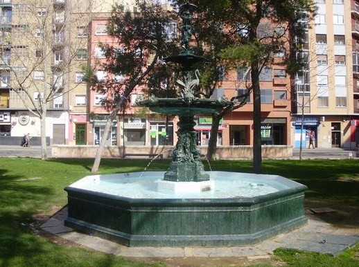 - Zona central de los jardines de la Plaza de Utrillas, junto a la calle Miguel Servet y frente a la antigua Estación de Utrillas, parte integrante en la actualidad del Centro Comercial Utrillas Plaza.