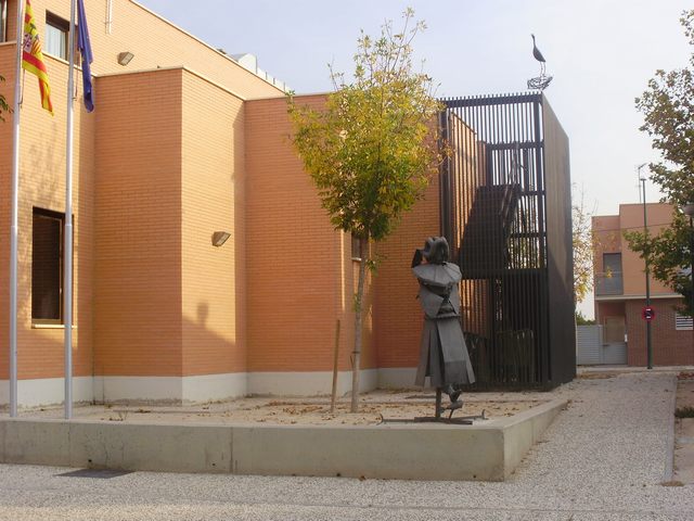 Cabe destacar por último que la acertada ubicación de la pieza en alto, sobre una esquina del vallado de la escalera de emergencia que da servicio al centro cívico y a la alcaldía de Garrapinillos, aumenta la verosimilitud y capacidad evocativa de la misma, que resulta muy notable a pesar de la gran economía material y formal con que está resuelta.