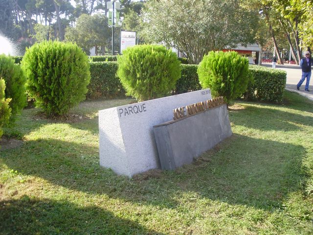 - Paseo de San Sebastián del Parque Grande José Antonio Labordeta, en el arranque del parterre central, justo al pasar el puente sobre el río Huerva que sirve de acceso principal al parque.