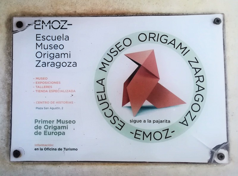 Izquierda: EMOZ Escuela Museo Origami Zaragoza. Museo - Exposiciones -Talleres - Tienda especializada - Centro de Historias, Plaza San Agustín, 2. Primer Museo de Origami de Europa.- Información.