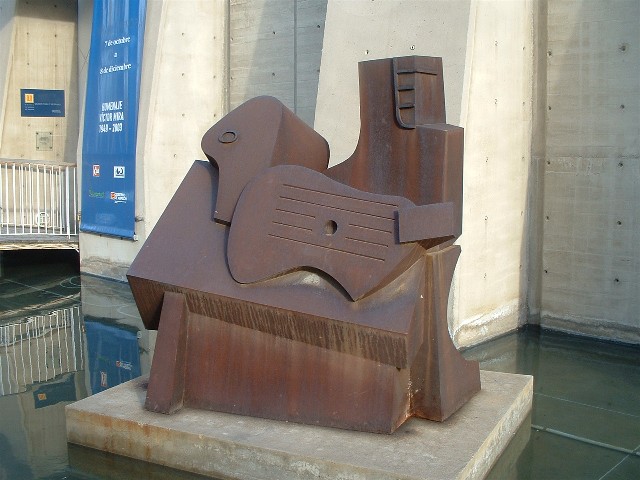 Pablo Serrano Aguilar (Crivillén-Teruel-1908, Madrid, 1985)se formó en las Escuelas Profesionales Salesianas de Sarriá (Barcelona) y hacia 1926 emigró a Rosario de Santa Fé (Argentia), dedicándose a la docencia de la escultura en centros profesionales de la congregación salesiana, para la que también realizó abundante imaginería religiosa. En 1935 se traslada a Montevideo (Uruguay), donde desarrollará una destacada carrera profesional como profesor y como escultor, primero en el campo de la escultura religiosa y más tarde como autor de importantes monumentos públicos, receptor de muy diversos encargos privados, ganador de sucesivos premios en certámenes oficiales, uno de los cuales le permite regresar a España en 1955. Bien recibido por la crítica y los medios culturales de Madrid, inicia una fructífera carrera, caracterizada por su condición de miembro fundador del grupo El Paso, su relevante presencia en la Bienal de Venecia de 1962, su participación en importantes exposiciones internacionales a lo largo de esa década y la organización de grandes muestras de su obra por parte de prestigiosas instituciones nacionales e internacionales durante la siguiente (trayectoria jalonada al mismo tiempo de grandes proyectos monumentales para muchas ciudades españolas y varios países latinoamericanos), que acabará consagrándole como uno de los principales escultores aragoneses contemporáneos y situándole entre las más destacadas figuras de la escultura española de la segunda mitad del siglo XX.