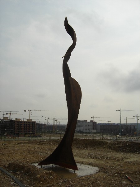 En 2006 se convocó un concurso, que se resolvería en abril del 2007, para decorar estos jardines: fueron presentadas 36 obras diferentes por parte de una quincena de artistas, entre ellos Julio Tapia, Isabel Queralt o el propio Pedro Jordán, que fue uno de los seleccionados con este proyecto, que representa una llama ascendiendo hacia el cielo en agitadas curvas.
