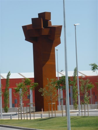 La nueva torre de Gimeno LLop toma el relevo a la antigua, una emblemática corona en las alturas de Zaragoza, con 28 metros de alto, sostenido en seis vigas, donde se emplearon 250 metros cúbicode hormigón y más de 27 toneladas de hierro. Aquella torre arquitectónica, que hacía la función de mirador, pasa el relevo a una de tipo escultórico, mucho más moderna y adaptada a los nuevos tiempos.