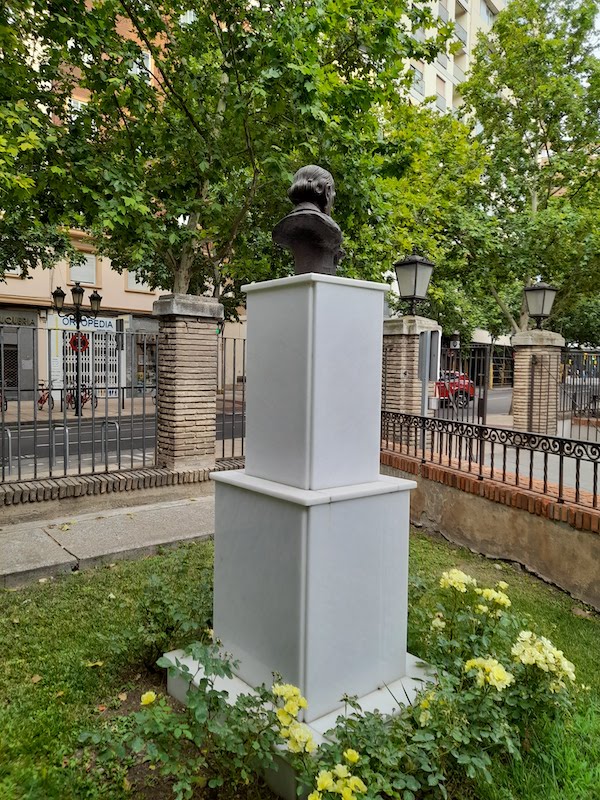 - El busto original había sido realizado en 1933 por el escultor zaragozano Mariano Urdániz en yeso. A partir de su réplica en bronce se hizo este monumento, inaugurado en octubre de 2021