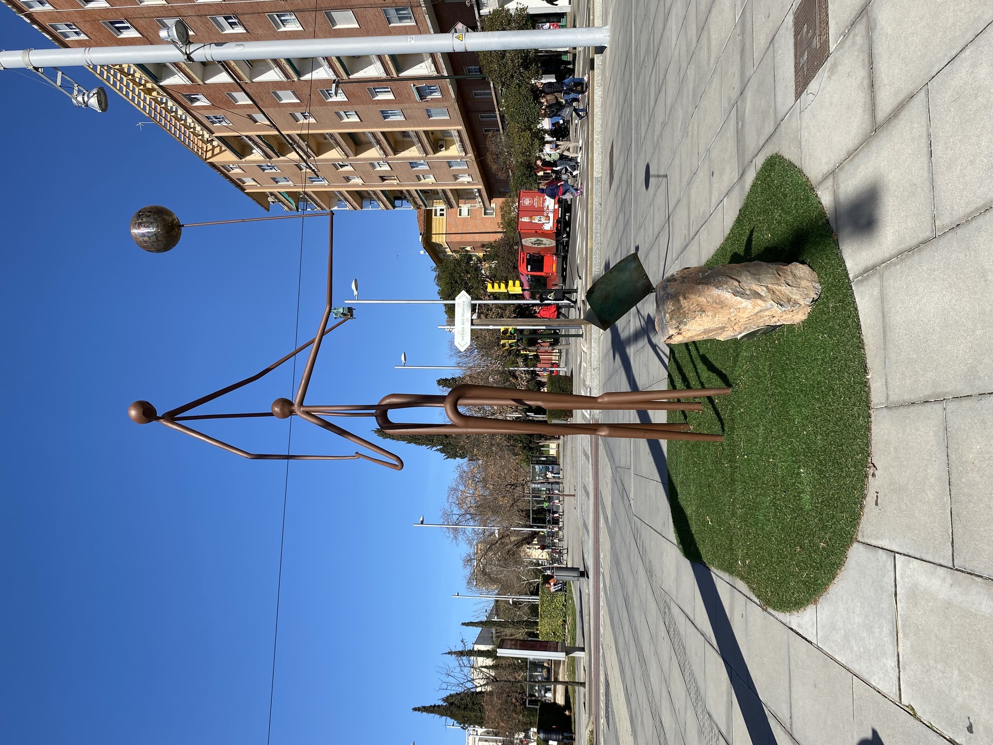 Esta escultura, promovida por el Ayuntamiento de Zaragoza y erigida en 2022, es obra del escultor zaragozano José Antonio Barrios Ibáñez. Realizada en acero al carbono y bronce, representa a una pareja de personas en conexión: una persona mayor que trasmite su legado a un niño con el que forma un conjunto armónico, una composición de arte público contemporáneo que simboliza la relación intergeneracional, el traspaso del legado construido con el esfuerzo de una trayectoria vital.