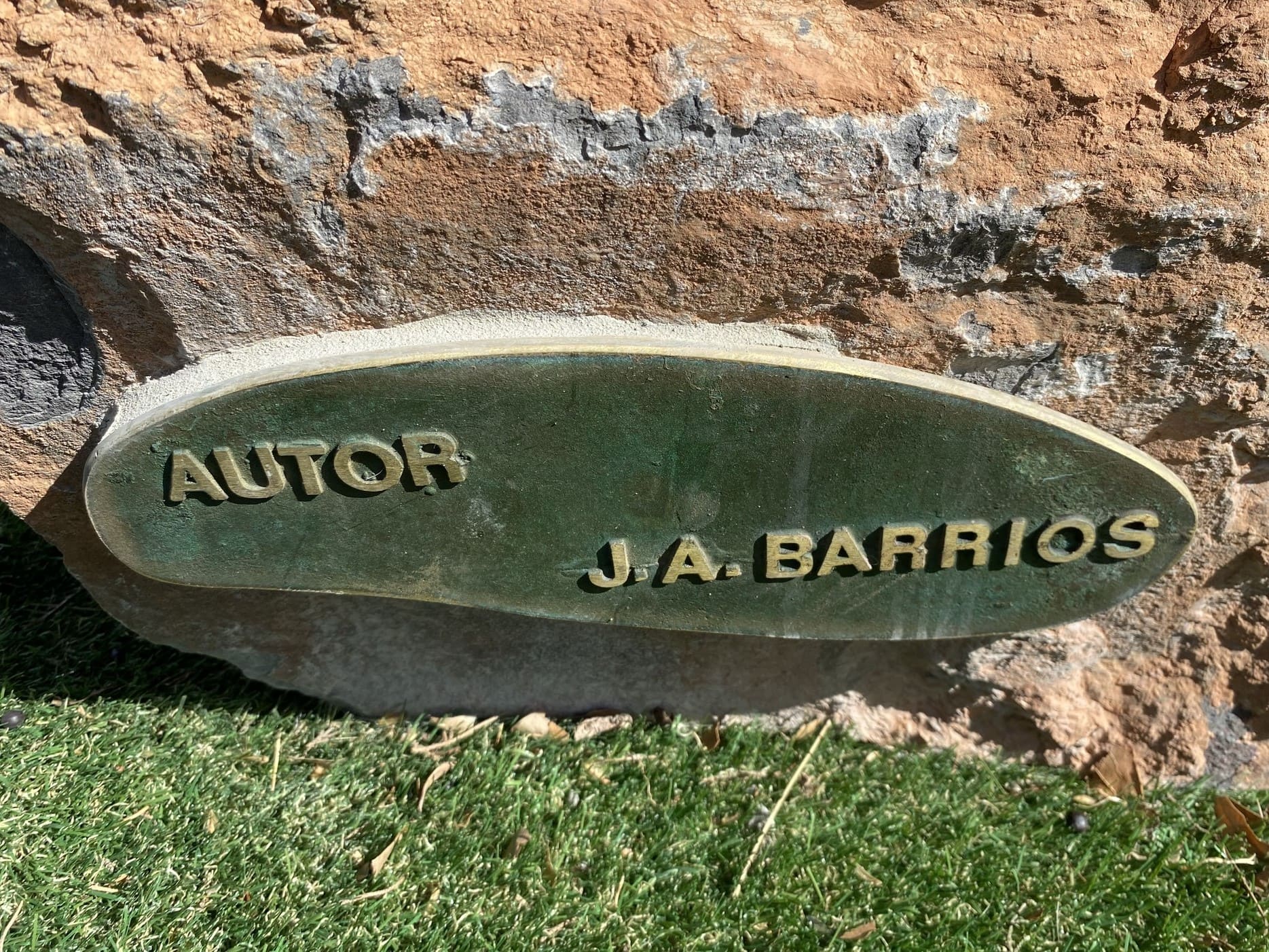 Placa de la parte posterior del pedestal pétreo: “AUTOR J. A. BARRIOS”.