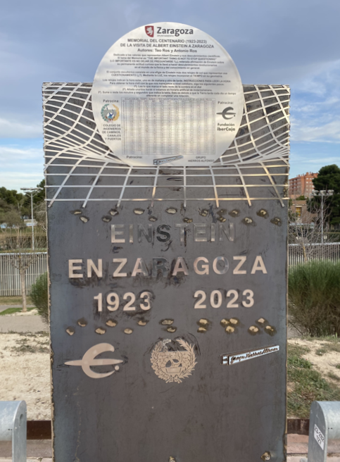 ANÓNIMO, “El memorial de Albert Einstein ya preside una de las entradas del Mobility City”, Heraldo de Aragón (Zaragoza, 15-III-2023). https://www.heraldo.es/noticias/aragon/zaragoza/2023/03/14/la-estatua-de-albert-einstein-ya-preside-una-de-las-entradas-del-mobility-city-1637960.html (consultado el 16-III-2023).