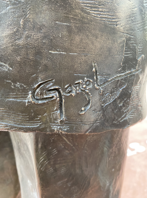 En la parte trasera de la estatua de bronce del científico, en el borde inferior de la chaqueta, se incluye la firma del escultor de la misma: “Gazol”. Cerca de ella se dispone también la referencia de autoría del diseñador general del conjunto: “® Antonio Ros / PA/A”.