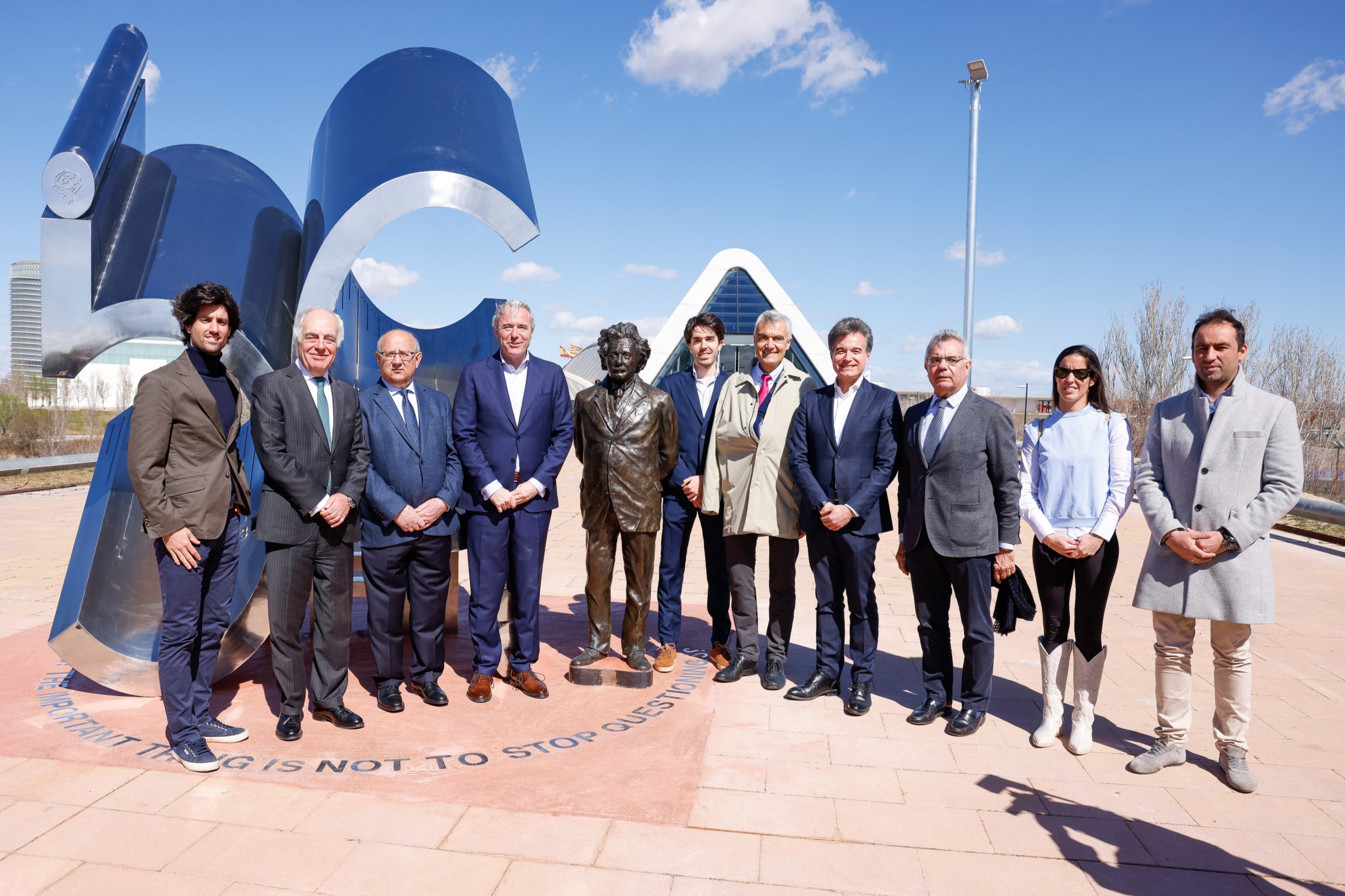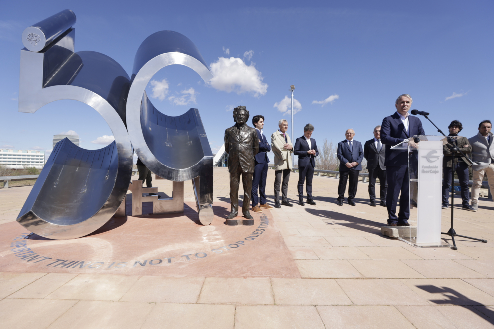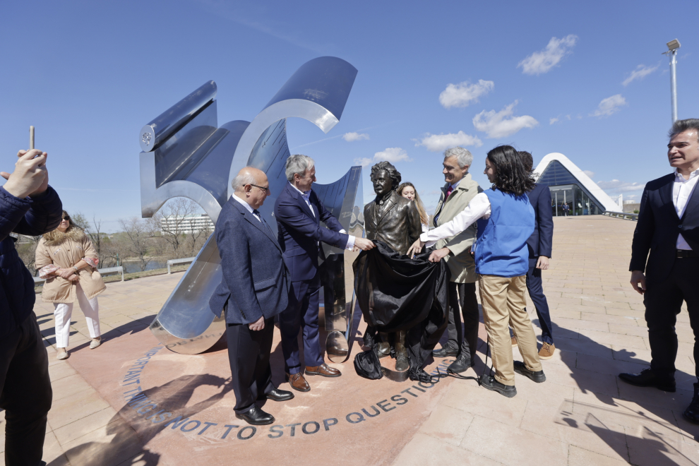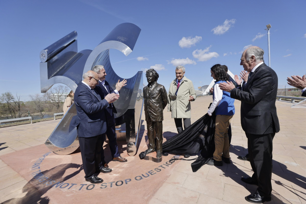 La inauguración oficial del monumento tuvo lugar el 14 de marzo de 2023, coincidiendo con el primer centenario de la visita de Albert Einstein a Zaragoza y de la celebración de su 44 cumpleaños en la ciudad. Contó con la presencia del alcalde, Jorge Azcón, que presidió el acto, del director general de la Fundación Ibercaja, José Luis Rodrigo, del presidente de la Fundación Ibercaja, Honorio Romero, y de dos de los autores de la obra, Juan Antonio Ros y Teo Ros, que también estuvieron acompañados por representantes del Colegio de Ingenieros, Caminos, Canales y Puertos de Aragón y del Grupo Hierros Alfonso.