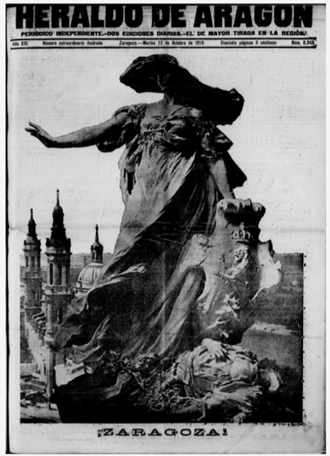 Portada del Heraldo de Aragón (12 de octubre de 1915). ¡Zaragoza!. Heraldo. Página 7. Disponible en: https://www.zaragoza.es/hemeroteca/prensa/HMZ_P0178/HMZ_P0178_1915-10-12/HMZ_P0178_1915-10-12.pdf [Consultado el 6-2-2026].