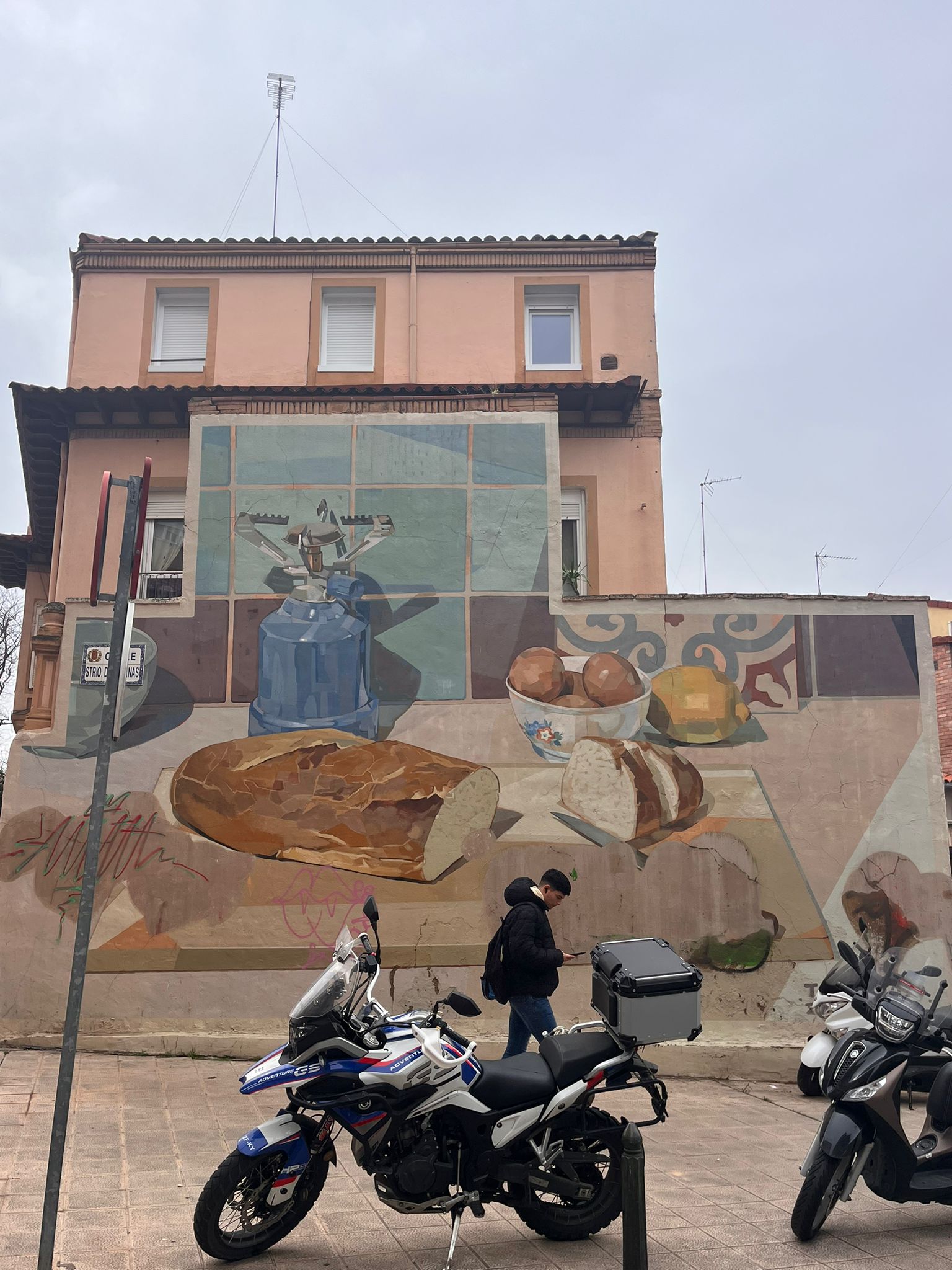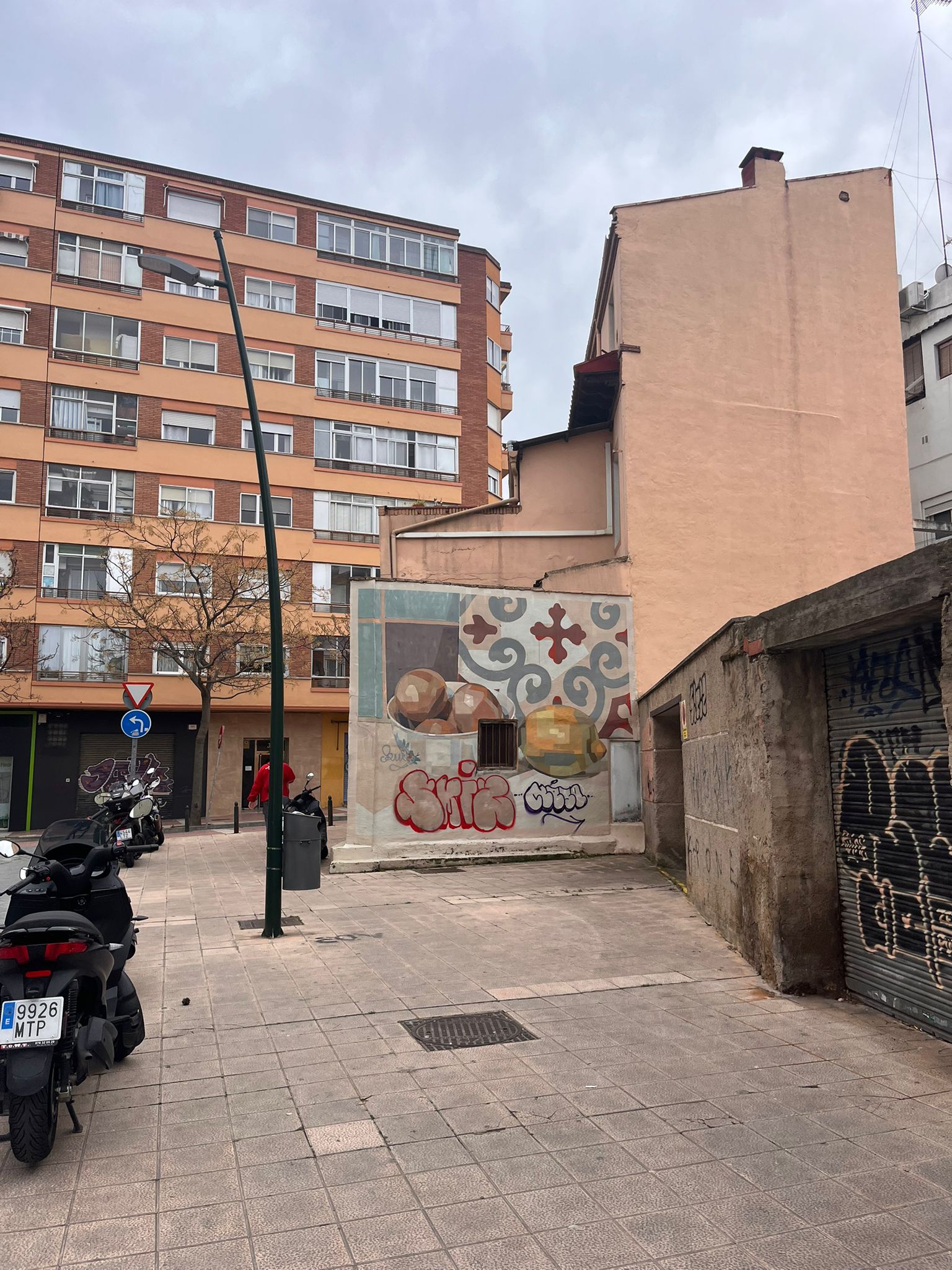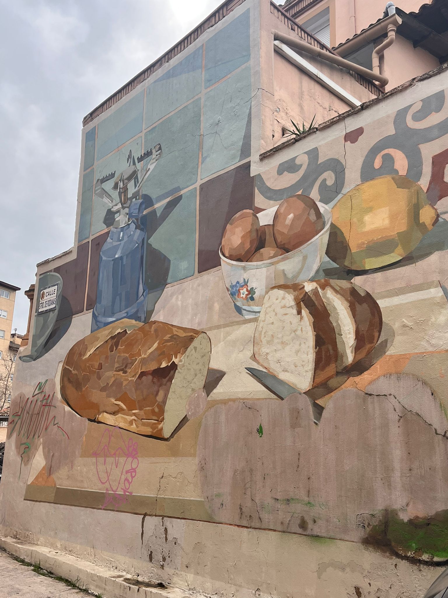 Este mural aborda la temática clásica de un bodegón con el lenguaje del arte urbano contemporáneo. La obra está pensada para el muro medianero de un edificio de viviendas, así que la composición se adapta a la forma irregular de la pared que el propio artista comparaba con un barco. El estilo tiene un aire entre postcubista y Pop por el cromatismo fragmentario, distribuido en espacios planos resaltando las formas de los objetos por el silueteado dibujístico así como con la representación de potentes luces y sombras.