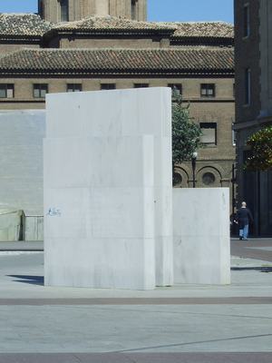 - - "ESTA PLAZA/DE NTRA. SRA. DEL PILAR/SE REMODELÓ/SIENDO ALCALDE DE LA CIUDAD/EL ILMO. SR. D. ANTONIO GONZÁLEZ TRIVIÑO/Y TENIENTE DE ALCALDE DE URBANISMO/D. LUIS GARCÍA-NIETO ALONSO/ZARAGOZA 8 DE MAYO DE 1991"(En uno de los laterales frontales de uno de los monolitos de mármol blanco).