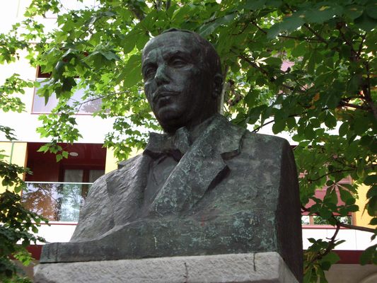 La obra fue adjudicada al escultor Bueno que residía en Madrid desde hacía tiempo. Con el fin de realizarla se trasladó a Zaragoza, modelando el busto de "Mefisto" durante el mes de octubre de 1934. Poco después se efectuó la fundición en bronce en los talleres Codina de Madrid.