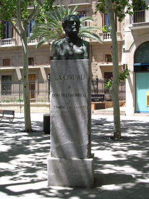 Fue el cuarto y último de los monumentos del tipo busto-retrato sobre pedestal, erigidos en la plaza de Aragón con el fin de homenajear a ilustres escritores y periodistas zaragozanos. En este caso es el segundo que realiza Félix Burriel para este lugar. El escultor pone todo su interés en mejorar su anterior contribución -el Monumento a Marcos Zapata-. Para ello resuelve con mayor acierto el retrato del personaje, fallecido hacía 54 años, y rebaja considerablemente la altura del pedestal.