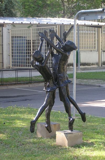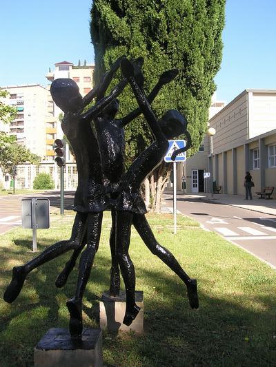 Aunque se haya perdido el balón del que caía el agua, y por tanto el uso como fuente y una parte del argumento evocado, lo que queda de este grupo escultórico mantiene su integridad estética. Sí se ha perdido algo del arriesgado impulso ascensional con que fue concebido, pues originalmente había un solo pedestal central, en el que se apoyaba la punta del pie de una niña; mientras que ahora hay dos pedestales. No es un comentario baladí, pues hay en este ejemplo, y también en la escultura de los Patos en vuelo para el Parque Tio Jorge, un punto de inflexión en la carrera escultórica de Manolo López hacia estudios de dinamismo compositivo, donde encontró su camino propio, lejos del expresionismo a la moda y de las citas de grandes maestros. Los niños-fuente estaban llenos de homenajes a Gargallo y Serrano; pero aquí ya encontramos maduro el estilo personal del artista, que prescinde de los divertidos juegos de vacíos y masas para centrarse en una silenciosa cabriola. Como las bailarinas de ballet, estas niñas no gritan ni cantan al saltar, ni siquiera tienen sus caras rasgos diferenciados, y todas visten la misma faldita e igualmente llevan el pelo recogido -aunque cada una de forma diferente, para evitar una monótona repetición serial-.