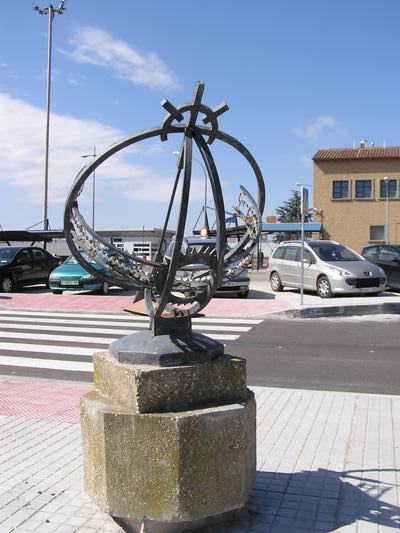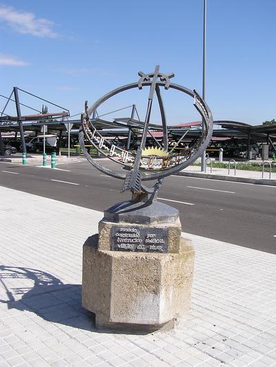 Se trata de un trabajo final de un curso realizado por los alumnos del Centro Politécnico "Virgen del Pilar": una reproducción exacta del reloj del parque "Frogner" en Oslo.El conjunto "Frognerparken" de Gustav Vigeland lo constituyen fundamentalmente cuatro partes: 1) El puente; 2) La fuente con su cascarón sostenido por hombres y los árboles de la vida que la rodean; 3) El monolito o columna de figuras que se aprietan unas contra otras y sus 12 filas o rayos que irradian circularmente alrededor del monolito con sus 20 escalones y 36 grupos de granito, en la colina de Abel y, 4) La rueda de la vida, al final del parque. Todo ello se completaba con las puertas de acceso al parque y las ocho que rodean el "plateau" del monolito y sus 36 grupos escultóricos. En cuanto al reloj de sol que nos ocupa, formó parte de este espléndido conjunto escultórico, con el titulo de "La rueda de la vida", el reloj. Es del tipo Ecuatorial-Armilar, lleva el Anatema en las 12 horas, numeración arábica y en su base la rodean los 12 signos del zodíaco. Por su parte y como curiosidad, el reloj mantiene una profunda inclinación que corresponde con los 60 grados de latitud de Oslo.