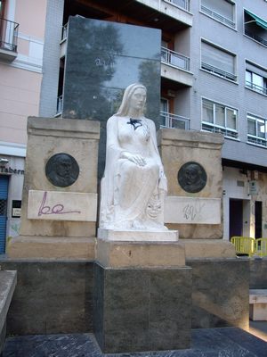 El boceto del monumento estuvo concluido en enero de 1923, siendo expuesto en la casa consistorial. En el primer semestre de ese año, Bueno realizó la estatua femenina y los medallones. En el mes de mayo el escultor solicita al alcalde que se inicien las obras de cimentación del monumento en la plaza de San Lorenzo -actual plaza de San Pedro Nolasco- , pero éstas se dilataron hasta diciembre de 1923, fecha en la que el monumento está concluido. No hubo inauguración oficial.