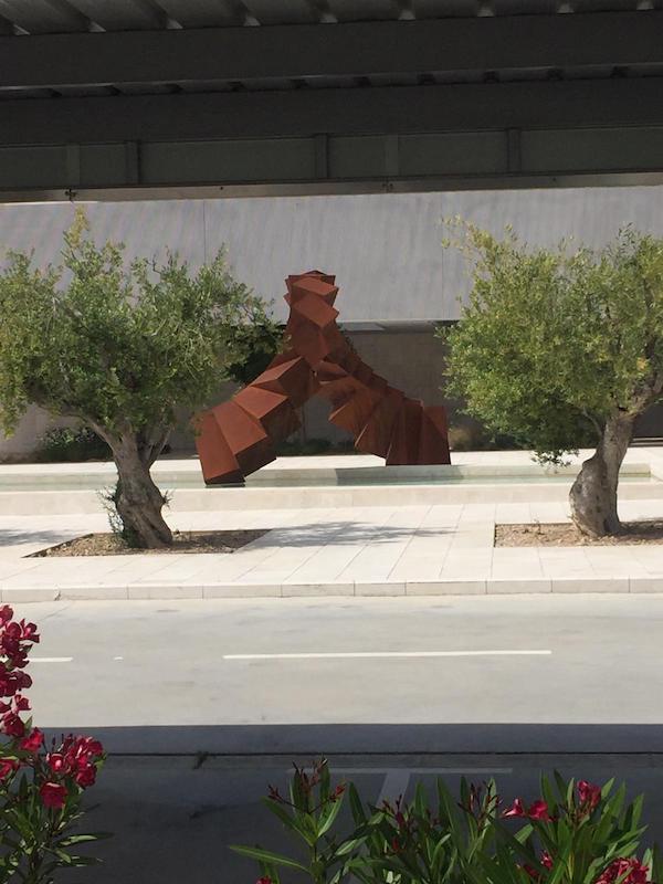 Colocado ante la entrada del hospital de la Mutua de Accidentes de Zaragoza