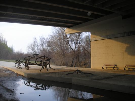 La pieza se ubicó en el verano de 2008 en Los jardines del Arte, dentro del recinto Expo, junto al Hotel Hiberus. Una vez acabada la muestra se instaló en la margen derecha del Ebro, bajo el Puente de la Almozara.
