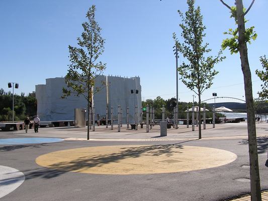Frente Fluvial de la Expo, junto al mural titulado Enjoy your waterfront, en el espacio ocupado durante la Expo 2008 por la plaza temática Ciudades del Agua.