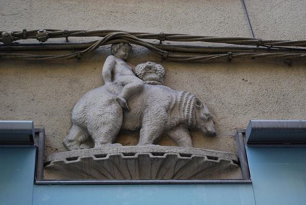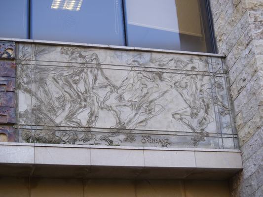 Decoración escultórica en la fachada de C/ Conde de Aranda nº 122