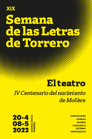 La Semana de las Letras de Torrero tiene como lema en su XIX edición El teatro: IV centenario del nacimiento de Molière. Organizada por el Centro Cívico Torrero, la Biblioteca Fernando Lázaro Carreter y la Junta Municipal Torrero, con la colaboración de otros servicios municipales y entidades vecinales, la Semana contará con exposiciones, charlas, talleres, lecturas y espectáculos, que girarán sobre este tema, además de la entrega de los Premios de los Concursos Literarios de Torrero, en las modalidades de Cuento, Literatura joven, Teatro breve, Poesía y Relato.