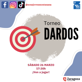 El domingo 26 de marzo celebraremos un torneo de dardos en la Zona Joven Montañana. ¡¡Participa y pasa una divertida tarde con tus amistades echando unas flechas!!