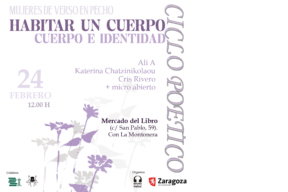 Recital colectivo con varias autoras locales así como del panorama nacional y micro abierto para el público en torno a la temática del cuerpo y la identidad desde una perspectiva feminista. En el micro abierto se podrán compartir poemas tanto propios como ajenos y también se pondrán a disposición del público asistente diversos materiales impresos con poemas de autoras referentes que versen sobre la temática elegida.