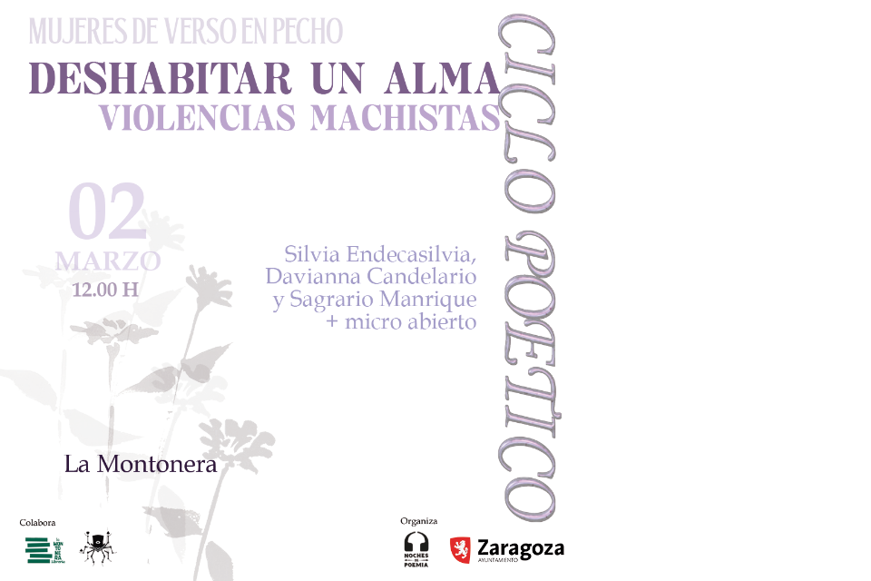 Recital colectivo con varias autoras locales y micro abierto para el público en torno a la temática de las violencias machistas. En el micro abierto se podrán compartir poemas tanto propios como ajenos y también se pondrán a disposición del público asistente diversos materiales impresos con poemas de autoras referentes que versen sobre la temática elegida.