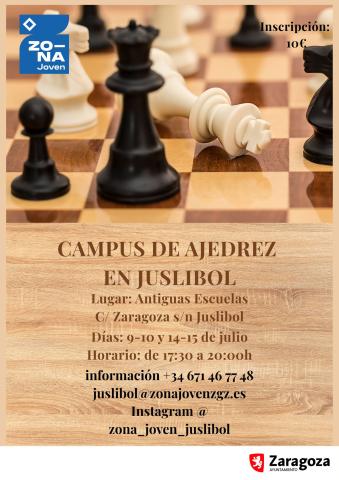 ¿Te apetece empezar un nuevo deporte? O quizás le das ya, y quieres perfeccionar? Viene con nosotras un profe del Club de Ajedrez Marcos Frechín para pasar unas tardes perfectas en compañía de nuevas amistades. El lugar elegido es en el patio de las Antiguas Escuelas de Juslibol, en la c/ Zaragoza 96 de Juslibol. Un sitio con arbolado y bonito para pasar estas tardes.