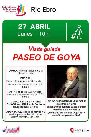 Visita guiada "Paseo de Goya " con la Oficina de Turismo de Zaragoza para las personas socias de la Red Municipal de Centros de Convivencia
