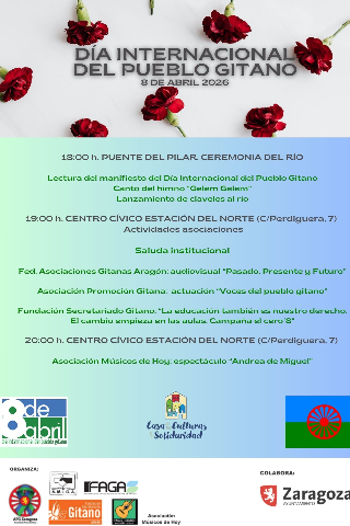La tarde del día 8 de abril, a las 18h., tendrá lugar en el Puente del Pilar (antiguo Puente de Hierro) la llamada Ceremonia del Río, uno de los actos más emotivos y representativos de este Día, en el que los gitanos y gitanas lanzan al río Ebro claveles en memoria de cualquier manifestación de discriminación que a lo largo de la historia ha sufrido el pueblo gitano. El acto incluye la lectura del Manifiesto y la interpretación del himno gitano Gelem Gelem. Esta Ceremonia se celebra en los principales ríos de todo el mundo.