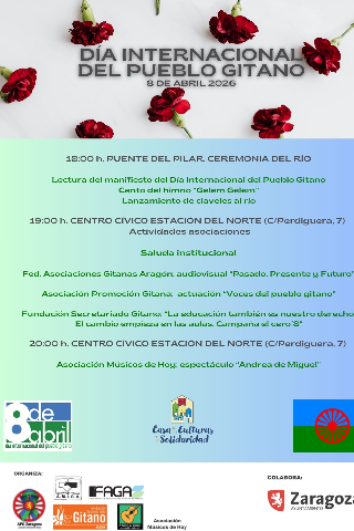 La jornada terminará con la iluminación de las fuentes del Pza. España y Parque José Antonio Labordeta con los colores de la bandera gitana.