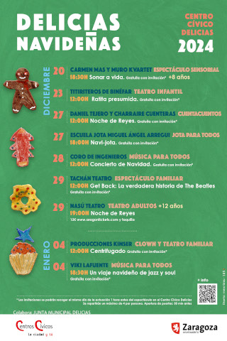 Actuaciones gratuitas con invitación. Se podrán recoger desde 1 hora antes de cada actuación en el Centro Cívico Delicias.