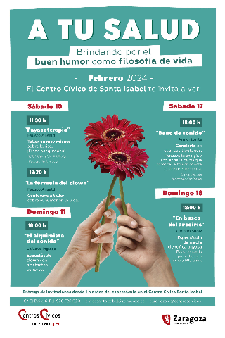 A TU SALUD... brindando por el buen humor como filosofía de vida tendrá lugar del 10 al 18 de febrero en el Centro Cívico Santa Isabel.