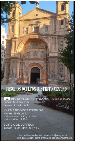 Desde la Junta del Distrito Centro de Zaragoza hemos organizado unas visitas guiadas gratuitas de tesoros ocultos de nuestro distrito para la semana del 17 al 20 de junio.