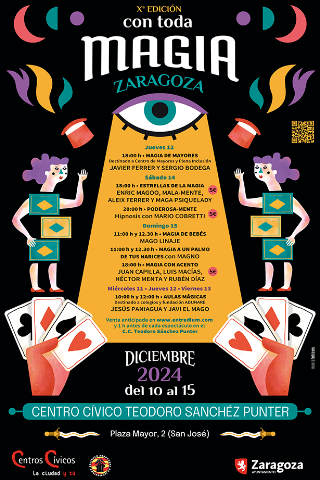 Del 10 al 15 de diciembre se celebra en Zaragoza la Xª Edición 'Con Toda Magia Zaragoza 2024' en el Centro Cívico Teodoro Sánchez Punter con una variada programación que incluye artistas de proyección nacional y local.