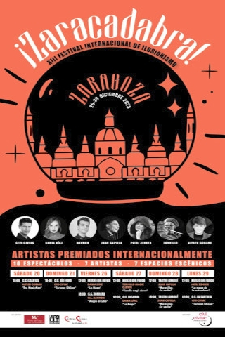 Zaragoza volverá a convertirse en Navidad en la capital internacional de la magia con este festival que pretende acercar el mundo del ilusionismo a todos los públicos y dignificar al máximo este arte con la participación de los mejores ilusionistas del mundo, grandes artistas que combinan en sus espectáculos la magia con el teatro y el humor con la sorpresa. Entre ellos, dos magas, ya que desde sus inicios, Zaracadabra siempre ha valorado la figura de la mujer en la magia, programando a las mejores artistas del momento. Asimismo, hay que destacar que dos ilusionistas son aragoneses: el oscense Ismael Civiac con su compañía Civi-Civiac, campeón de magia del mundo y con 25 años de trayectoria; y Juan Capilla, un joven ilusionista zaragozano, considerado como uno de los magos más creativos y originales del panorama nacional.