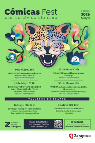 Cómicas Fest celebra su V Edición iniciativa impulsada por el Centro Cívico Río Ebro, un programa que se consolida como el referente del humor hecho por mujeres en nuestra ciudad, reivindicando la figura de las cómicas en un ámbito tradicionalmente masculino.