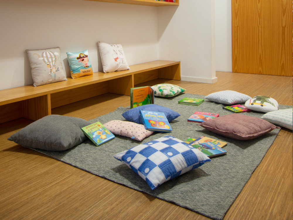 Valoramos mucho los diferentes espacios que tenemos para que así todos nuestros/as alumnos/as puedan disfrutar tanto del espacio exterior como del interior. Contamos con sala de talleres, para hacer experimentos con materiales cotidianos (harina, pan rallado, sal, garbanzos,etc) y sala de luz para jugar con luces y sombras. Los pasillos y el hall de la escuela son espacios amplios y muy soleados que ofrecen muchas posibilidades de juego y que aprovechamos durante todo el curso para hacer diferentes actividades.