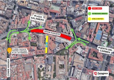 La fase final de las obras de reurbanización de César Augusto requieren activar durante 15 días un plan de movilidad ...