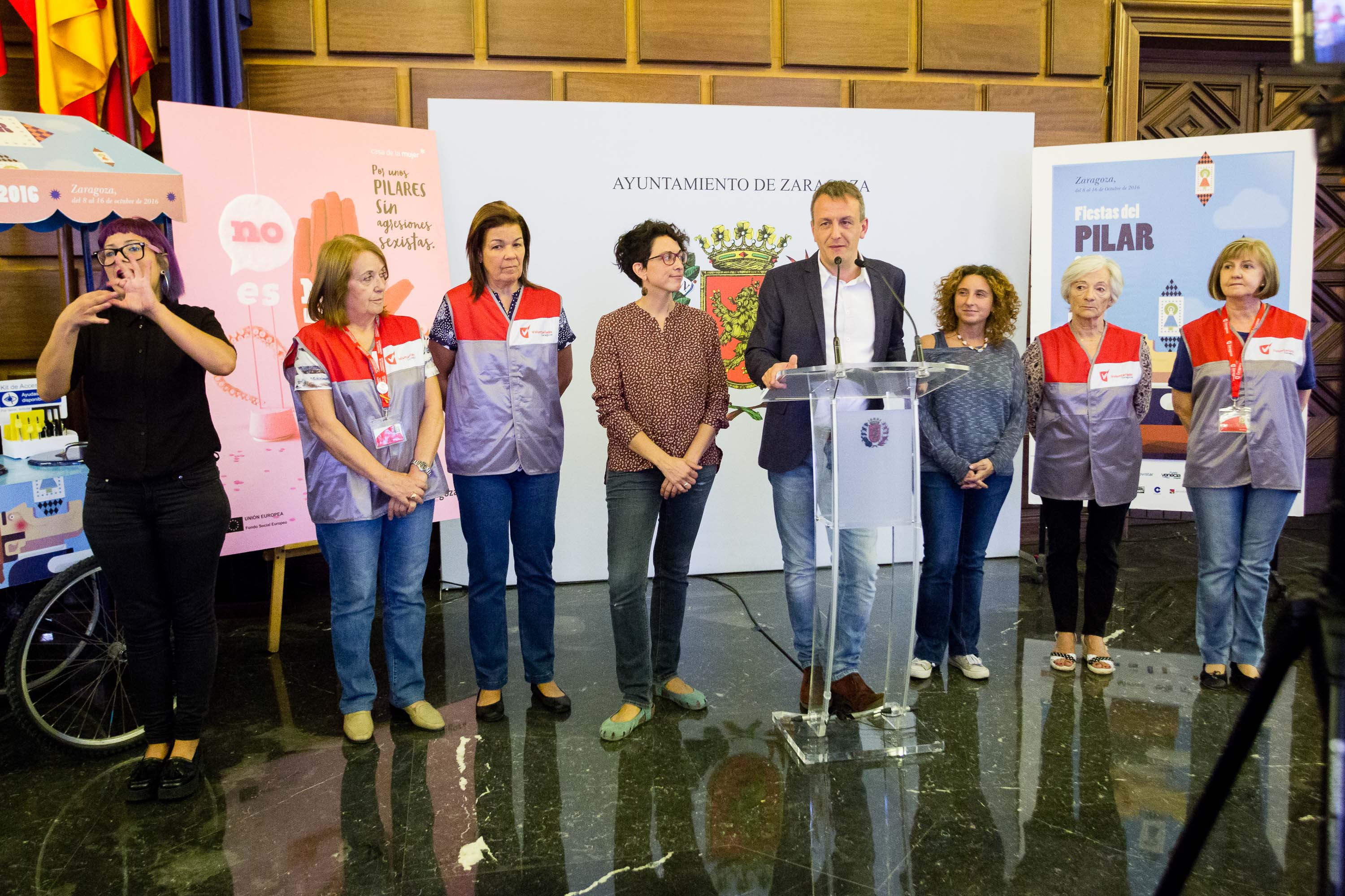 - Habrá más actos con intérprete de lengua de signos. Además de en la presentación de las fiestas y el pregón, se cuenta también con intérprete de signos en la entrega de medallas y distinciones de la ciudad, en la entrega de los premios de los concursos del Pilar y en la recepción municipal a entidades ciudadanas y nombramientos de zaragozanos ejemplares.