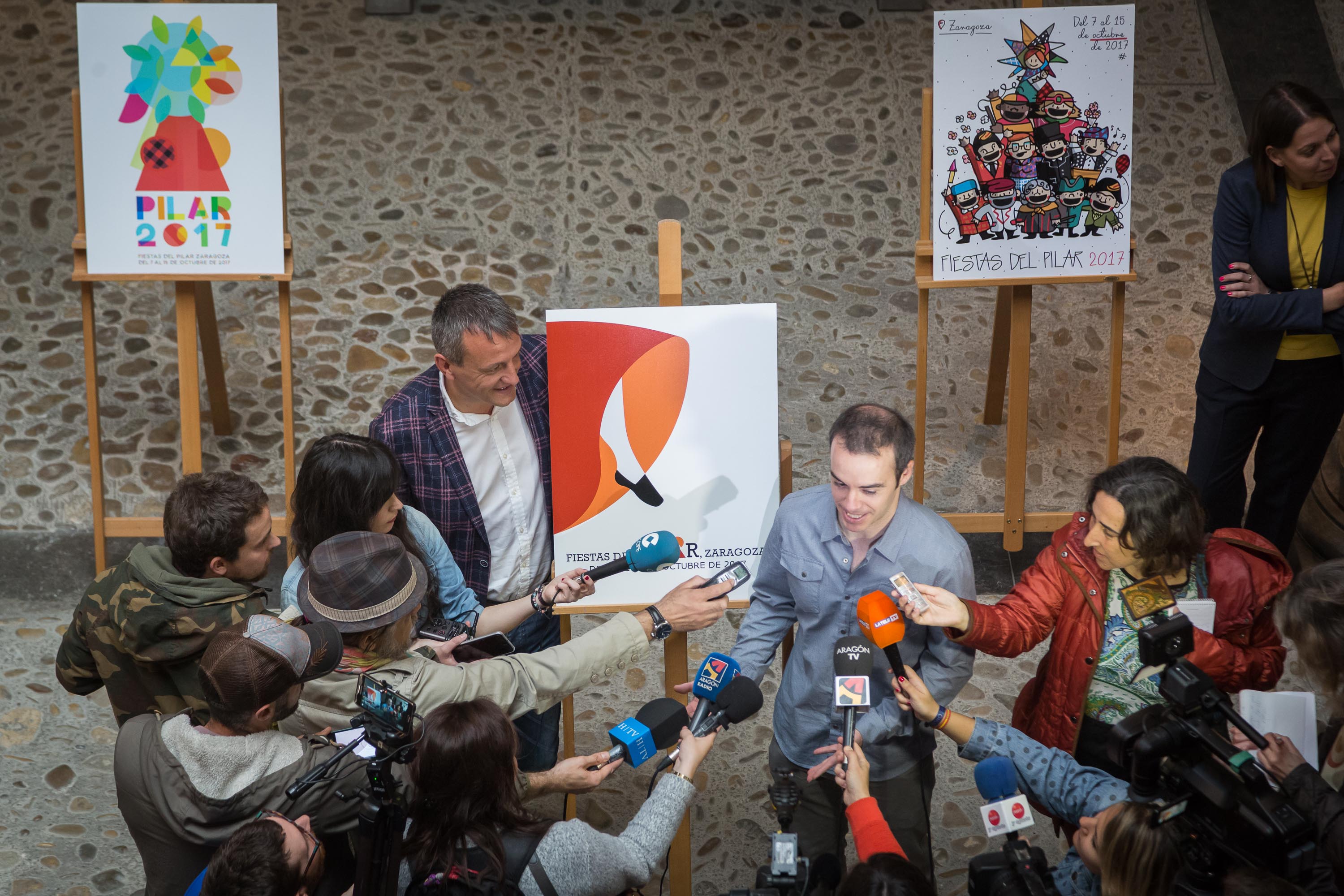 El zaragozano Javier Martín Martín se ha proclamado hoy ganador del concurso del Cartel Anunciador de las Fiestas del Pilar 2017, con su obra titulada "A la J, Jota". El cartel ha sido elegido entre los 125 presentados que optaban a la elección en esta nueva edición, que ha contado como el año pasado con un jurado integrado por profesionales de la imagen, las artes plásticas y visuales, y la publicidad.