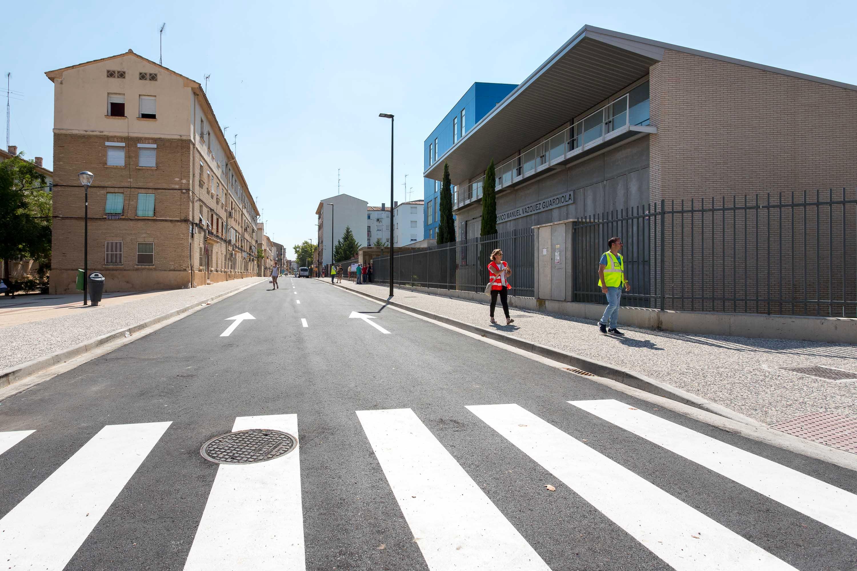 La arteria principal del barrio Oliver ya está abierta parcialmente tras concluir una de las fases de la renovación integral. Se ha finalizado por completo un tramo de la obra, en concreto entre c/San Alberto Magno y c/San Vicente Ferrer (pavimentación de aceras y calzada, redes de servicios, alumbrado público, señalización).