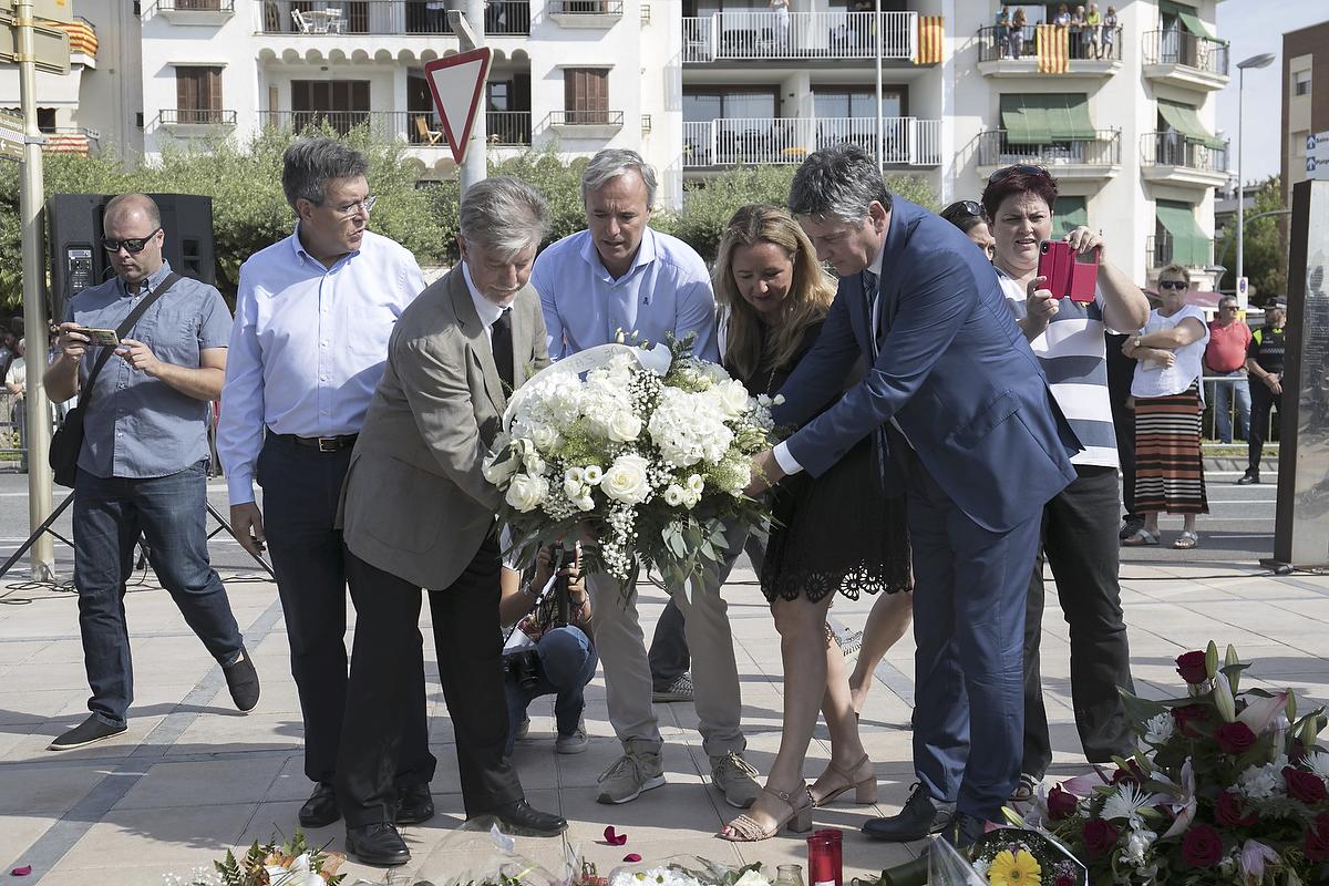 El alcalde Pedro Santisteve y representantes de varios grupos municipales han asistido a la inauguración del memorial 'Cambrils por la paz', donde han depositado un centro floral